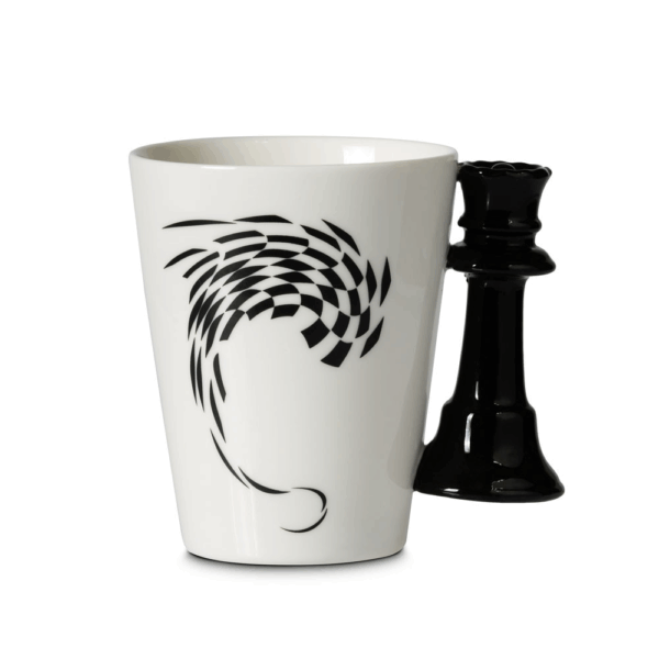 Stylowy kubek szachowy z uchwytem w kształcie królowej